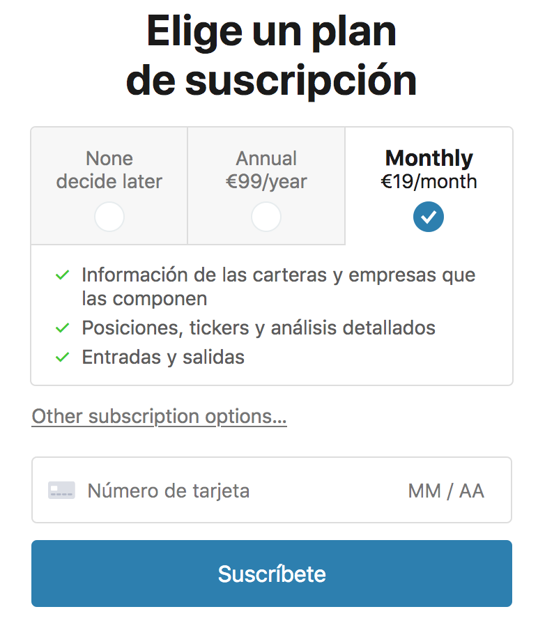 La mensual, de 19 euros, para ver todos los movimientos de todos los sistemas solo durante unos meses.