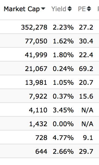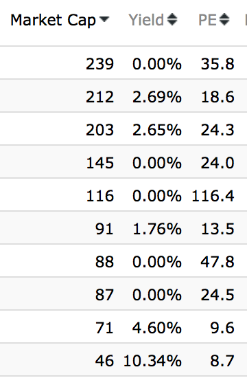 En relación al PER, dividendo y Capitalización bursátil, tenemos esta distribución.