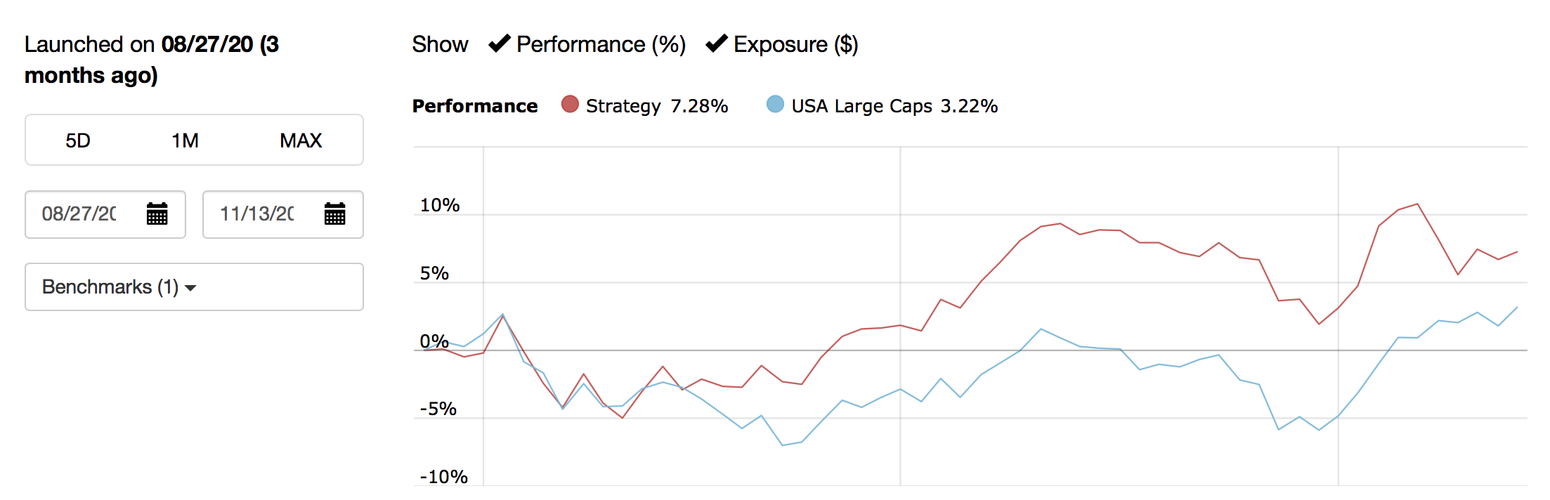Momentum esta teniendo un comportamiento excelente. Se comporta exactamente para lo que fue diseñado. Recoge las empresas con mejor Momentum del mercado y combina factores cómo nuevos máximos o baja volatilidad para componer una cartera con menos drawdown que el índice de referencia y más rendimiento.