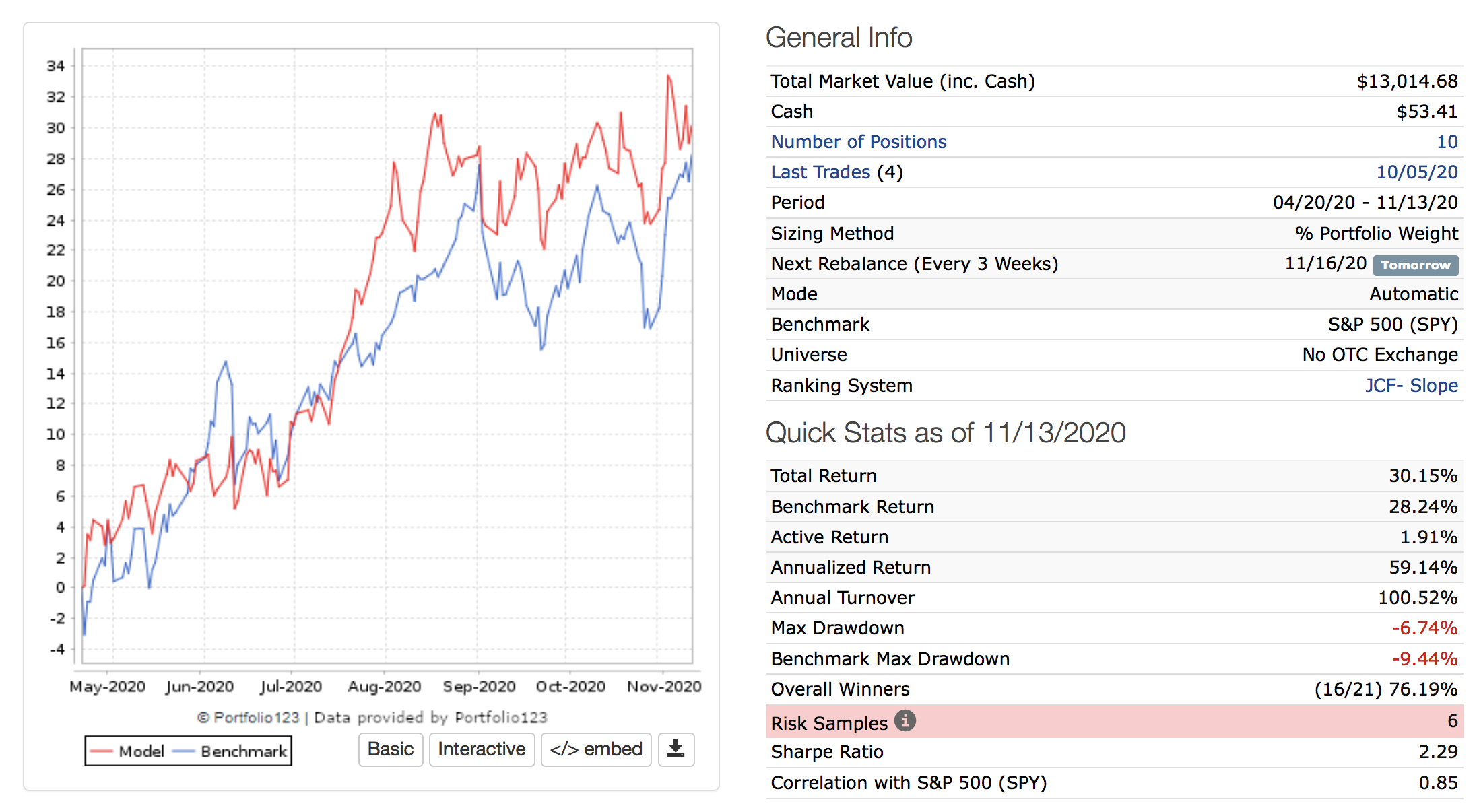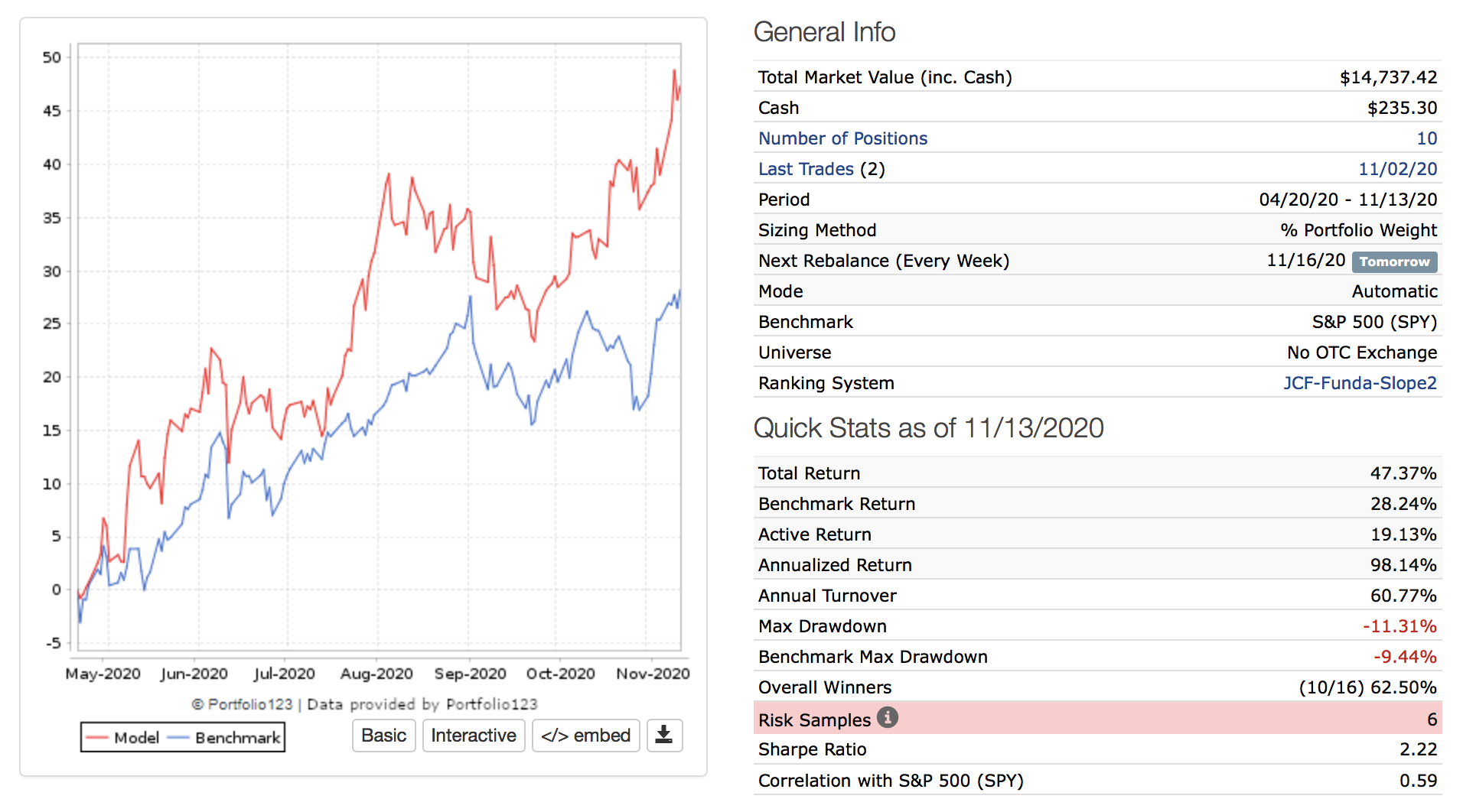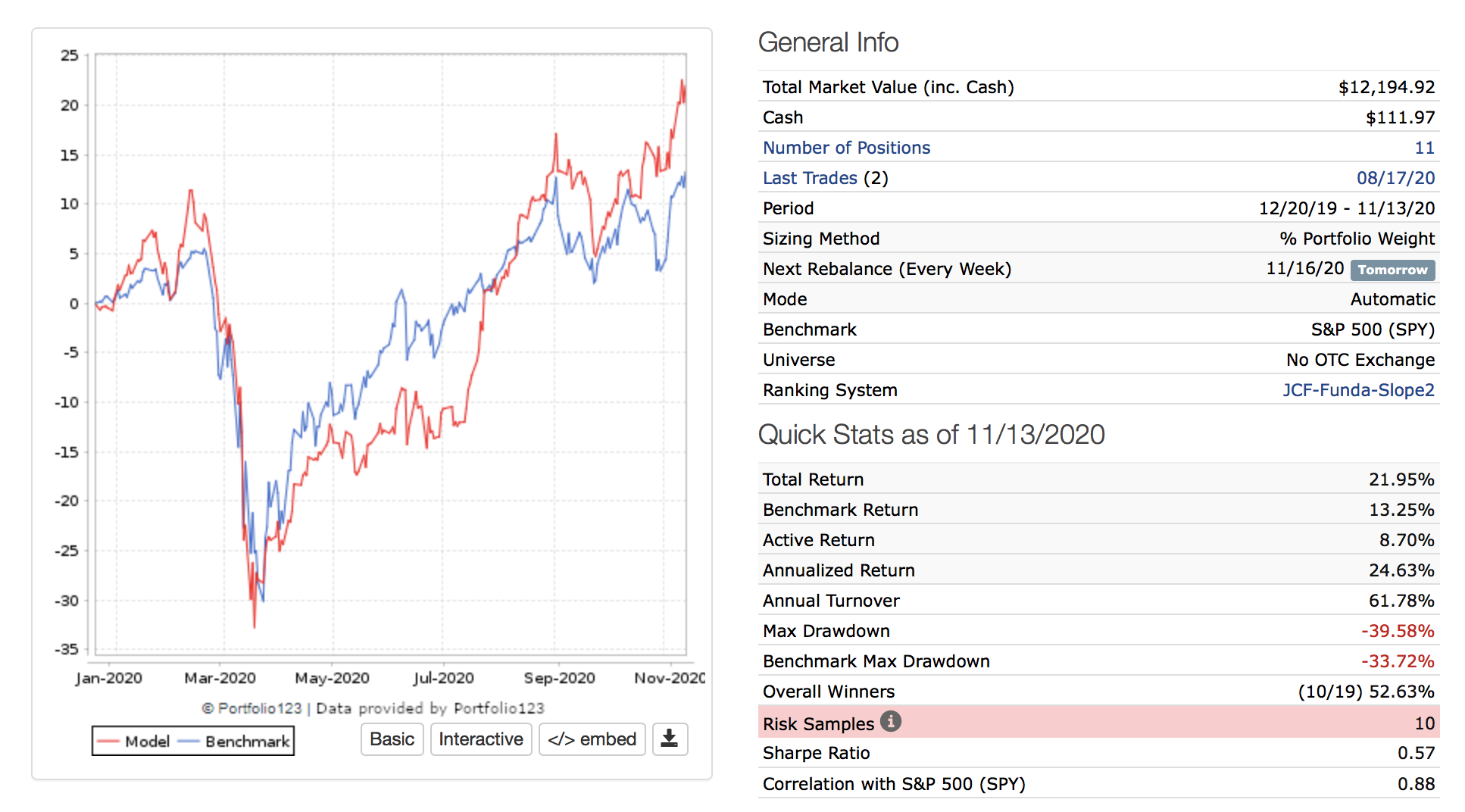 Hay que tener en cuenta que el sistema no compra empresas ilíquidas, o con un "free float" limitado. Tampoco compra "Penny stocks" ni nada excesivamente precario. Todas las acciones que forman la cartera tienen un precio superior a 1 dolar, y un volumen mínimo de negociación durante los últimos 20 días de 50.000 acciones.