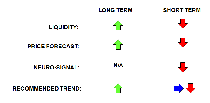 Debido a que tanto los flujos de liquidez y pronóstico del precio son alcistas, la tendencia recomendada es ALCISTA
