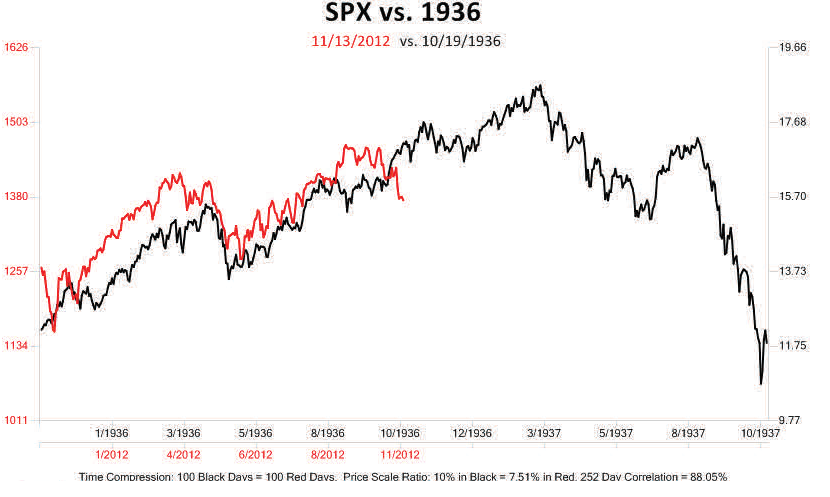 1936 - En este gráfico, la correlación es del 88.05% (en 1936, con 1 año y medio de datos, la correlación baja al 58%)