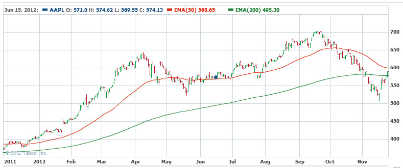 De momento estamos haciendo pruebas y queda todavía bastante trabajo, pero os quiero mostrar unos de los gráficos de prueba. Se trata de Apple (AAPL). Lo que hemos hecho ha sido analizar el periodo actual, desde el 25/11/2011 hasta ahora (1 año), y hemos buscado históricamente si había algo igual. De momento sólo en la propia acción, aunque la idea es buscar en cualquier activo.