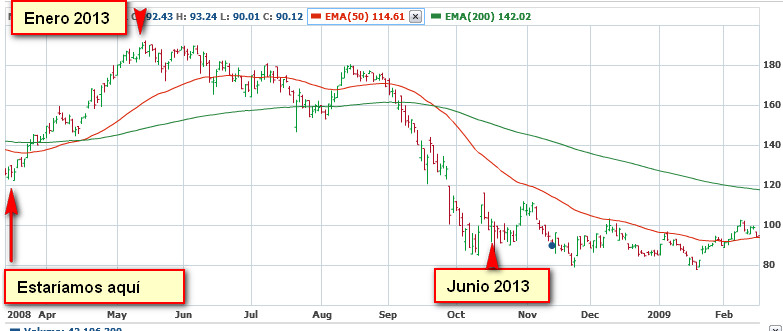 Y este es el periodo con un 85% de correlación. Va exactamente del 09/03/2007 al 05/03/2008