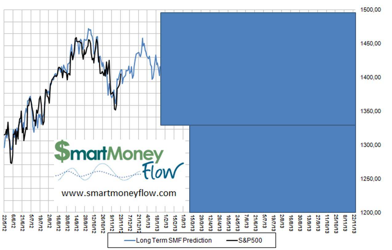 La subida hasta Enero va en sintonía con lo que expuse en "Predicción S&P500", y también con la herramienta de predicción de SMF (ver imagen abajo). Por lo que un rebote hasta casi máximos durante todo Diciembre es muy probable.
