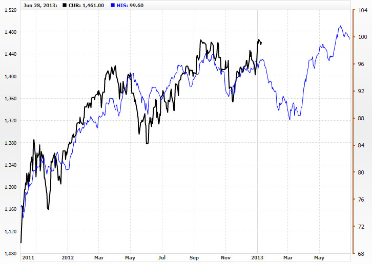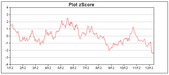 Otro gráfico interesante es la relación entre el S&P500 y el Russell, cuyo spread (1-17) nos muestra más de dos desviaciones estándar.... lo que significa que un techo está próximo. Además, ayer mismo vimos como el RUT mostró más debilidad que el resto de sus primos: