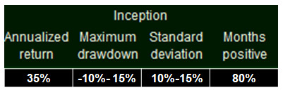 Los retornos medios brutos esperados son del +35% anual, con máximo drawdown intrames del 15%.