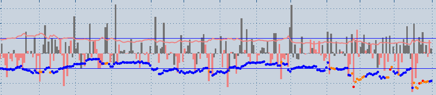 De 22 días de mercado, 8 días han sobrepasado 1 desviación estándar. Y 10 días hemos tenido alertas de riesgo (puntos amarillos y rojo).