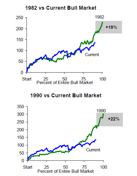 En las siguientes imágenes vemos patrones de años similares (1982 y 1990), con cierres de año por encima del 20% (fuente: www.tgcapitalgroup.com):