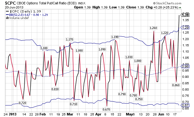 Vemos como el ratio Put/Call, a cierre de ayer, marcaba ya niveles extremos. Hoy este dato se habra disparado aún más.