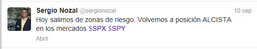 El pasado 06 de Agosto, aquí explicaba la situación de riesgo en la que entrábamos. Ayer, nuestros indicadores de riesgo se desactivaban y nos ponen de vuelta en un entorno de bajo riesgo o mercado alcista:
