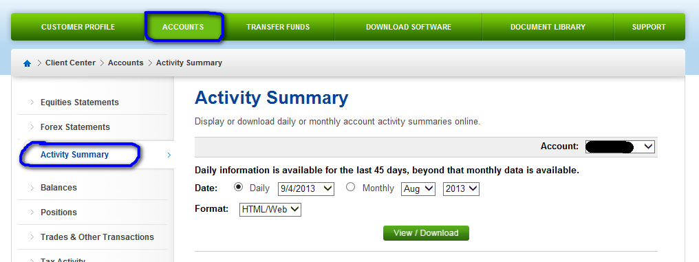 La más importante sería la pestaña del resumen de cuenta ("Activity Summary"), a través de la cual el inversor puede ver la evolución del capital invertido, cada día del año.