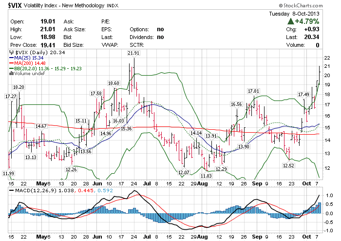 El índice VIX de Volatilidad, se disparaba hacia la zona de los 21 puntos, con el precio fuera de sus bandas de bollinger marcando una presión bajista importante. Es curioso cómo la volatilidad se ha disparado con fuerza y el S&P500 recién cruza su EMA50...