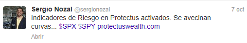 El 07 de Octubre, tal y como publicaba en twitter (@sergionozal), nuestros indicadores de riesgo de Protectus se activaban con luz roja: