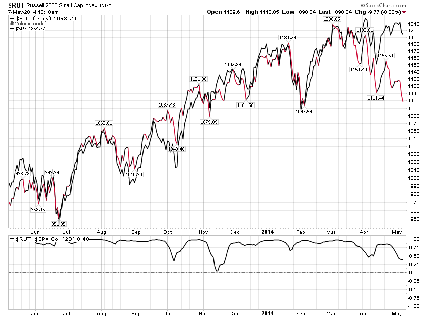 Desde hace ya varias semanas, el índice Russell 2000, índice que engloba las acciones de pequeña capitalización (Small Caps), se ha separado de la línea de su primo el S&P500.