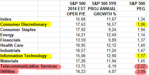Si vemos la situación por sectores, observamos cómo los sectores más baratos serían el "Consumer Discretionary" y "Information Technology", siendo los de "Telecommunication Services" y "Utilities" los más caros: