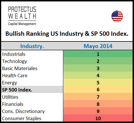 Lo más destacable, con respecto al mes anterior, es la subida de los sectores "Industrials" y "Technology", así como la recuperación del propio índice S&P500.