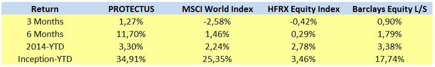 Desde entonces, han pasado ya 6 meses y el sistema está demostrando fortaleza y consistencia. El rendimiento acumulado desde entonces es del +11.70%, vs. +1.46% del MSCI World Index, o mejor referencia el +0.29% del HFRX Equity Index.