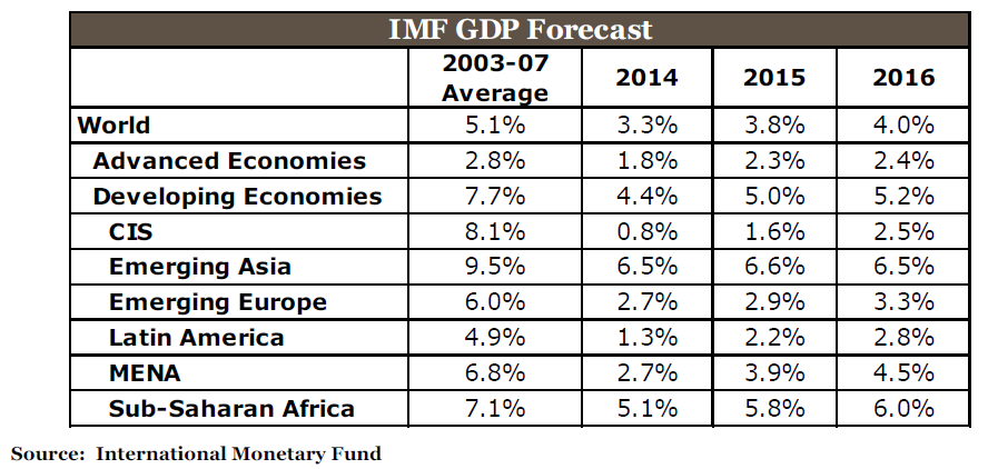 El Fondo Monetario Internacional estima el crecimiento global en el 3.8% para el 2015, y en el 4.0% para el 2016.