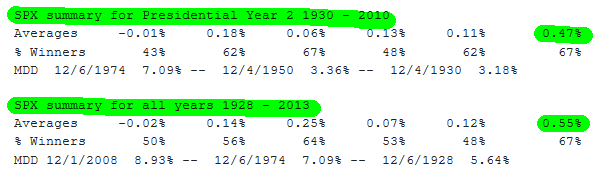 Para esta semana, el retorno medio histórico del índice S&P500 varía entre el +0.47% y el +0.55%