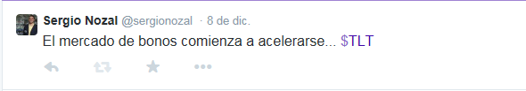 Durante la semana pasada veníamos observando una entrada importante en el mercado de bonos, como forma de cobertura a una bolsa en máximos. El Lunes, se daba el pistoletazo y los ETFs referenciados a Bonos, como el de ticker TLT, se aceleraban de forma importante: