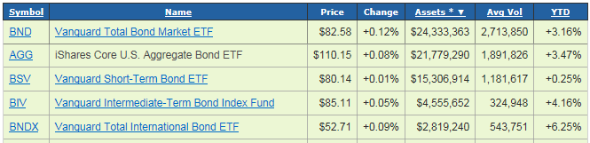 Si te interesan posiciones en el mercado de Bonos Global, en la siguiente imagen tienes los 5 ETFs más líquidos de ese grupo: