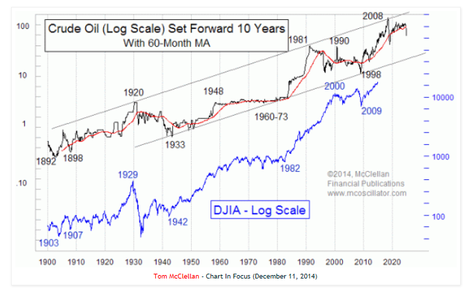 Se trata de una correlacción, vía McClellan, entre el Crudo Ligero (CL) y el Dow Jones (DJIA).
