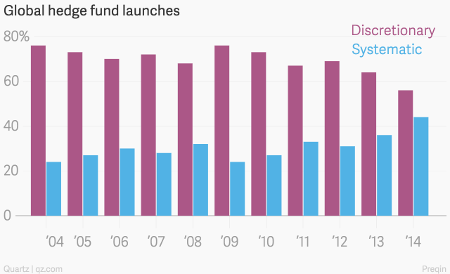 La tendencia por parte de fondos de inversión a utilizar procedimientos sistemáticos de inversión está creciendo cada vez más, siendo el año 2014 el año que ha registrado mayor número de fondos gestionados por esta vía. En contra, la operativa discrecional, todavía por encima de la operativa sistemática, va en tendencia bajista.