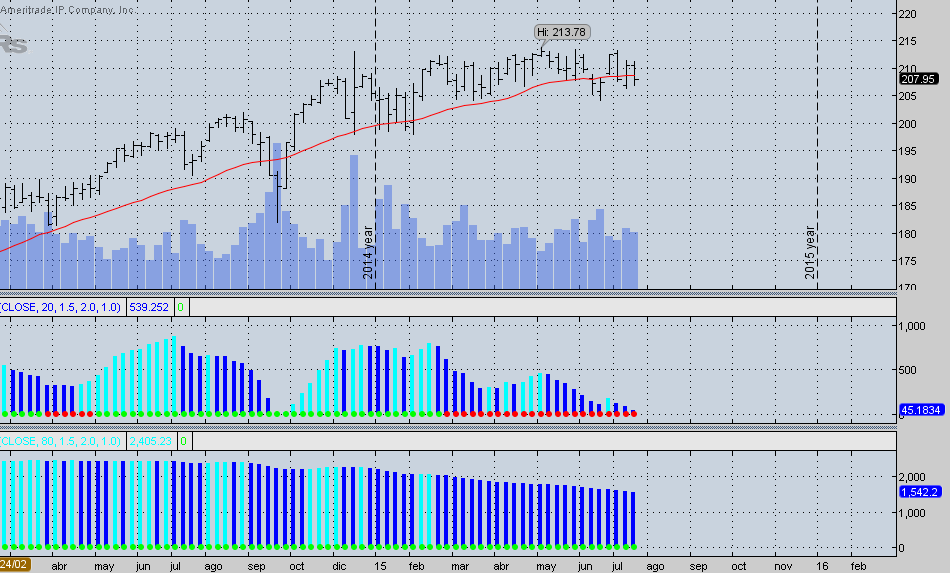 Sin embargo, la situación de medio plazo está cada vez más comprometida. Una rotura del SPY por debajo de 205 muy probablemente nos pondría en situación técnica bajista (de medio plazo: 4-6 meses).