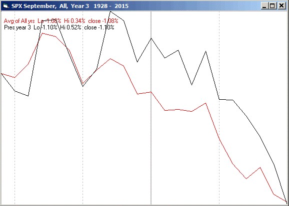 Precisamente, Septiembre sería el mes del techo para los años 3 del ciclo presidencial, como 2015, con fin de la corrección a finales de Noviembre.