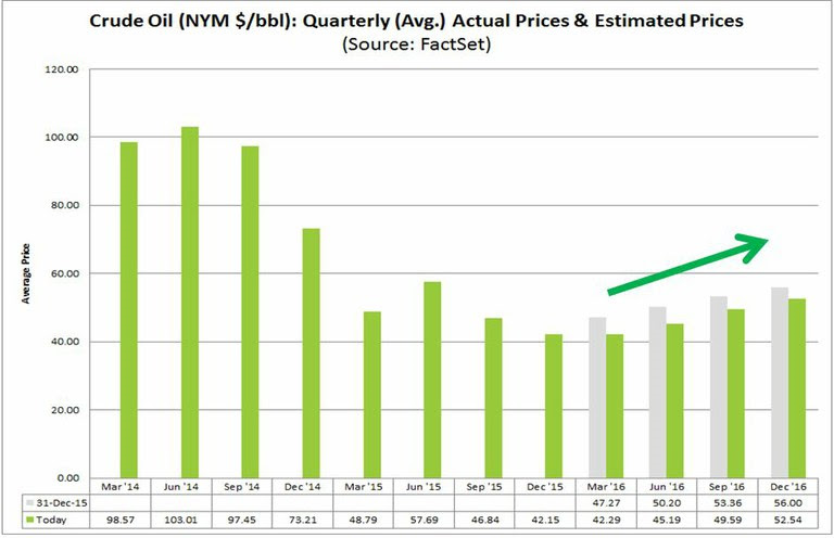 Sin embargo, a pesar de la esperada subida de cada trimestre, el precio medio estimado para 2016 (en base anual) es de $47.47, que está por debajo del precio del 2015 ($48.81).