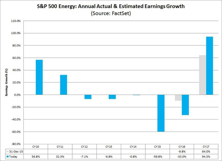 De la misma forma, los analistas esperan un incremento de los beneficios empresariales del sector energético en el S&P500 a lo largo de 2016. Sin embargo, para el 2016 aún se esperan caídas de hasta el 33%, con un fuerte repunte del 94.3% en el sector para el 2017.