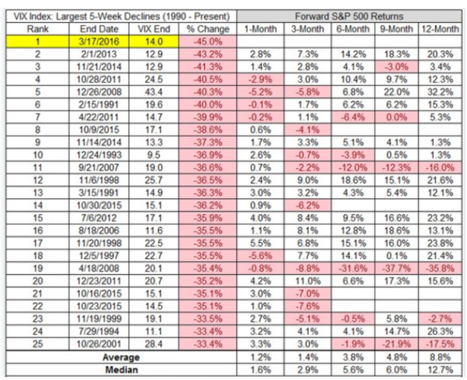 El movimiento actual del mercado es la mayor caída histórica de volatilidad en 5 semanas, con un -45% sobre el VIX.