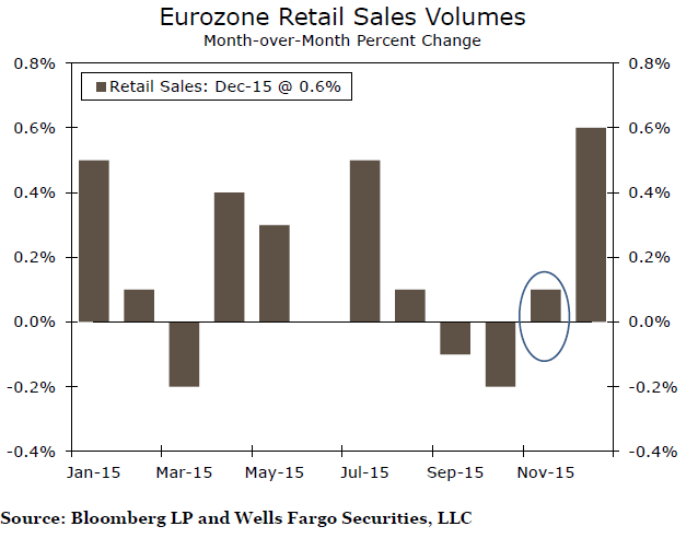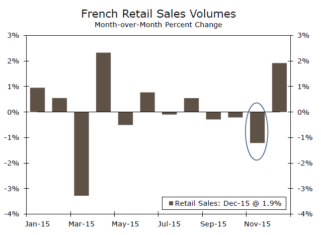 A pesar de lo ocurrido en Francia en Noviembre de 2015, el gasto del consumidor en la Eurozona creció un 0.1%, mientras que en Diciembre lo hizo en un 0.6%.