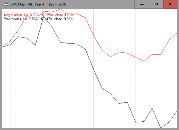 Mayo es un mes estacionalmente débil, con rendimientos medios del +0.22% y de hasta el -0.99%