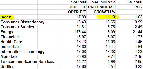En la siguiente imagen podemos ver las proyecciones de crecimiento por sector, así como la del propio índice, en el +11.13%, en línea a la expectativa del 10% que señalábamos aquí hace unas semanas: