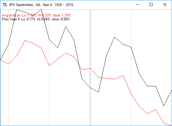 En la siguiente imagen vemos el movimiento estacional del S&P500 durante septiembre.