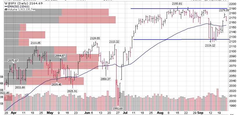 De momento, el movimiento más probable para el S&P500 es el rango lateral 2190-2115, con la zona de 2150 como principal soporte.