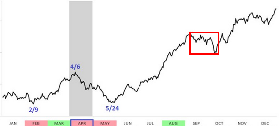 Se observa que estaríamos entrando en la parte final del periodo estacionalmente más débil, punto a partir del cual iniciaríamos un nuevo ciclo alcista hasta cierre de año.