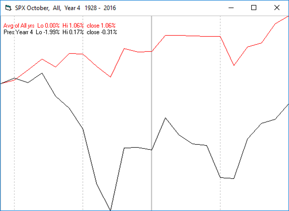 Se aprecia cómo los años presidenciales, octubre suele ser más débil, especialmente en la segunda semana del mes.