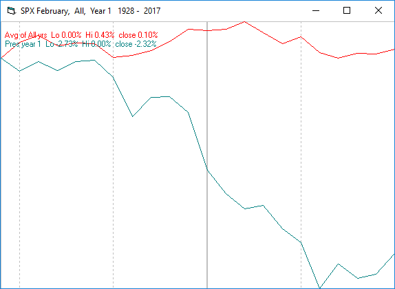 En la siguiente imagen vemos el patrón estacional de febrero, donde se observa la fuerte debilidad en la segunda parte del mes.