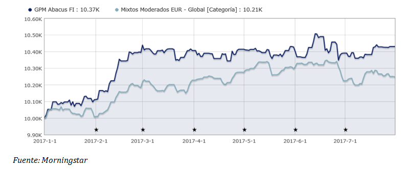 A cierre de mes, GPM ABACUS se sitúa en el percentil 22 de su categoría, dentro del top10 de fondos españoles de la misma (fuente: Morningstar).