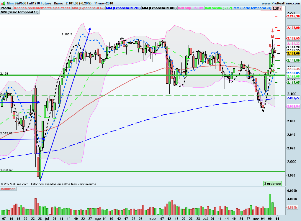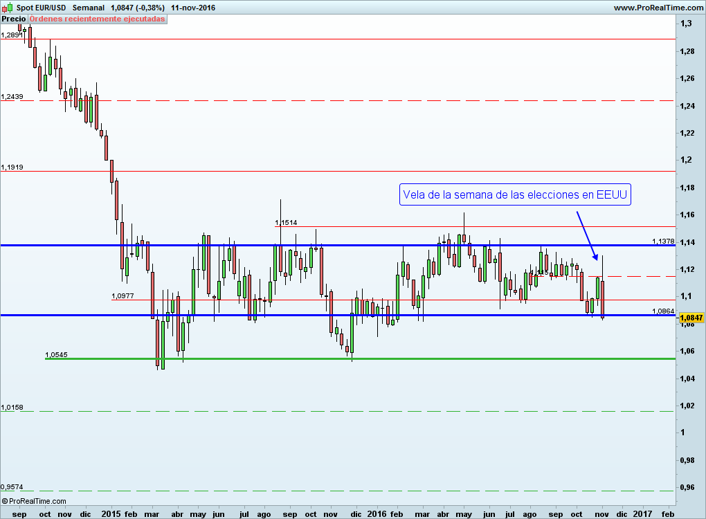 Este activo está más tranquilo como vemos que el Oro. Se mantiene dentro de la zona que vimos la semana pasada y no ha tenido grandes sobresaltos con las elecciones de EEUU.
