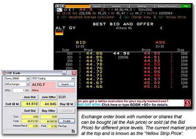 El módulo de operaciones CFD ofrece la posibilidad de dos botones para unirse a los precios ya sea de Compra o Venta, entonces si el precio de mercado actual para comprar una acción es 100, usted pondrá una orden para vender en 100. Esto se hace usando órdenes de Límite que garantizan el precio pero no lo que se ha tomado.