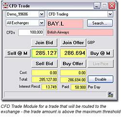 Cuando se operan CFDs que son guiados hasta un bolsa de intercambio, el Módulo de operaciones CFD se ve así: