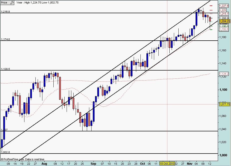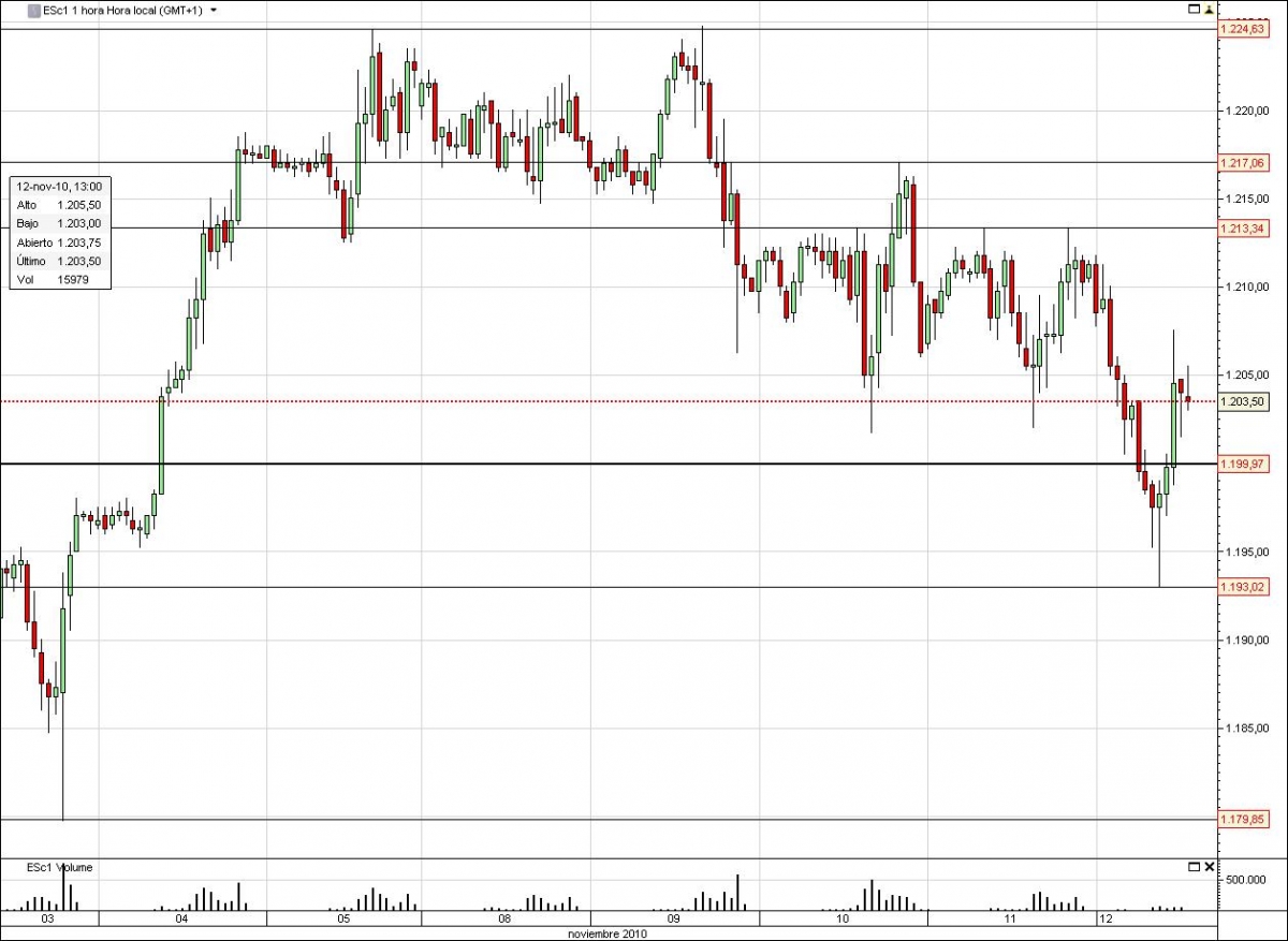 NIVELES ADICIONALES: 1224.75 Máximo del 9 de Noviembre 1213.25 Máximo del 11 de Noviembre 1206.25 Mínimo del 9 de Noviembre 1200.00 Nivel Psicológico 1193.00 Mínimo del 12 de Noviembre 1180.00 Mínimo del 3 de Noviembre |