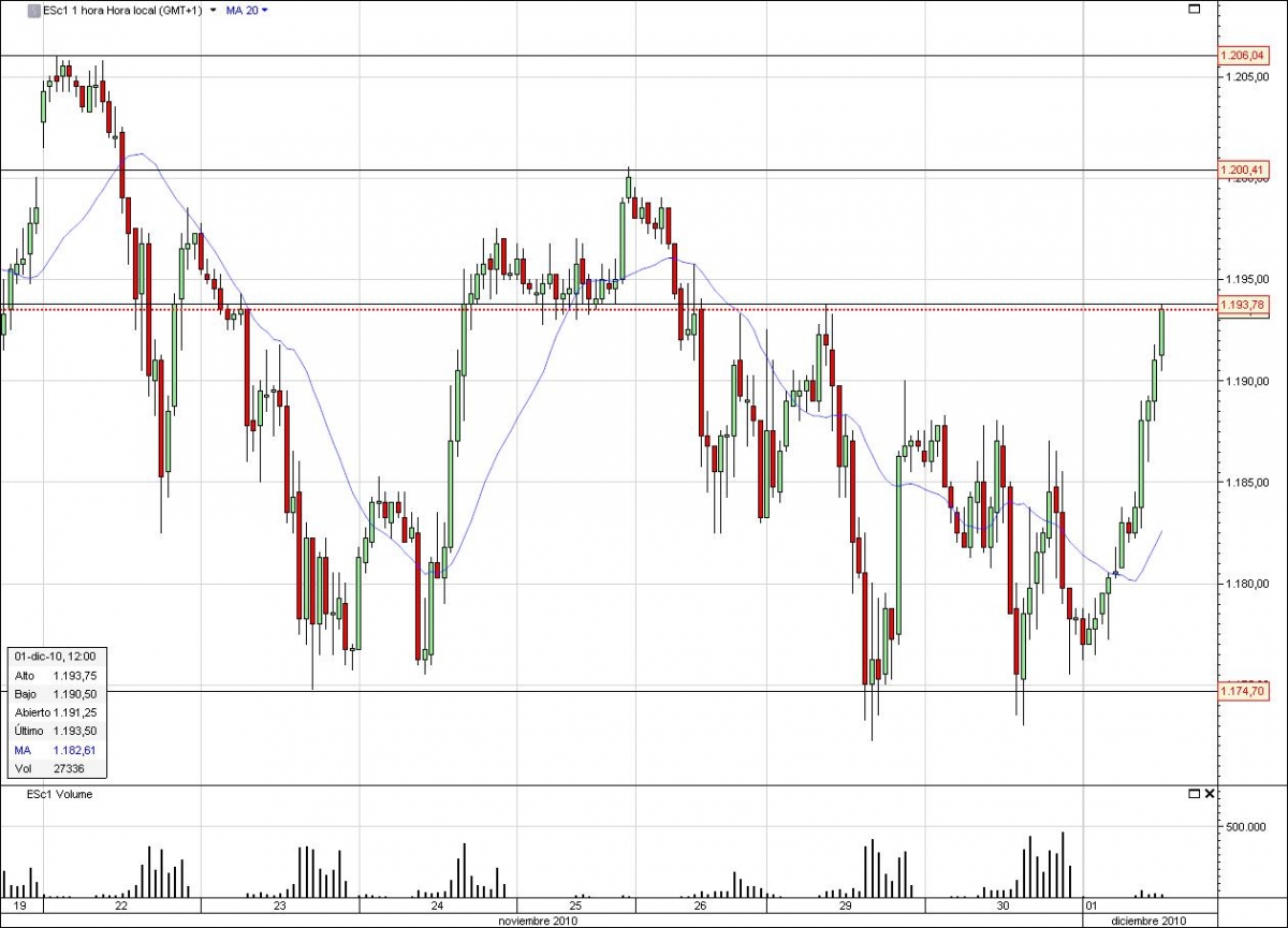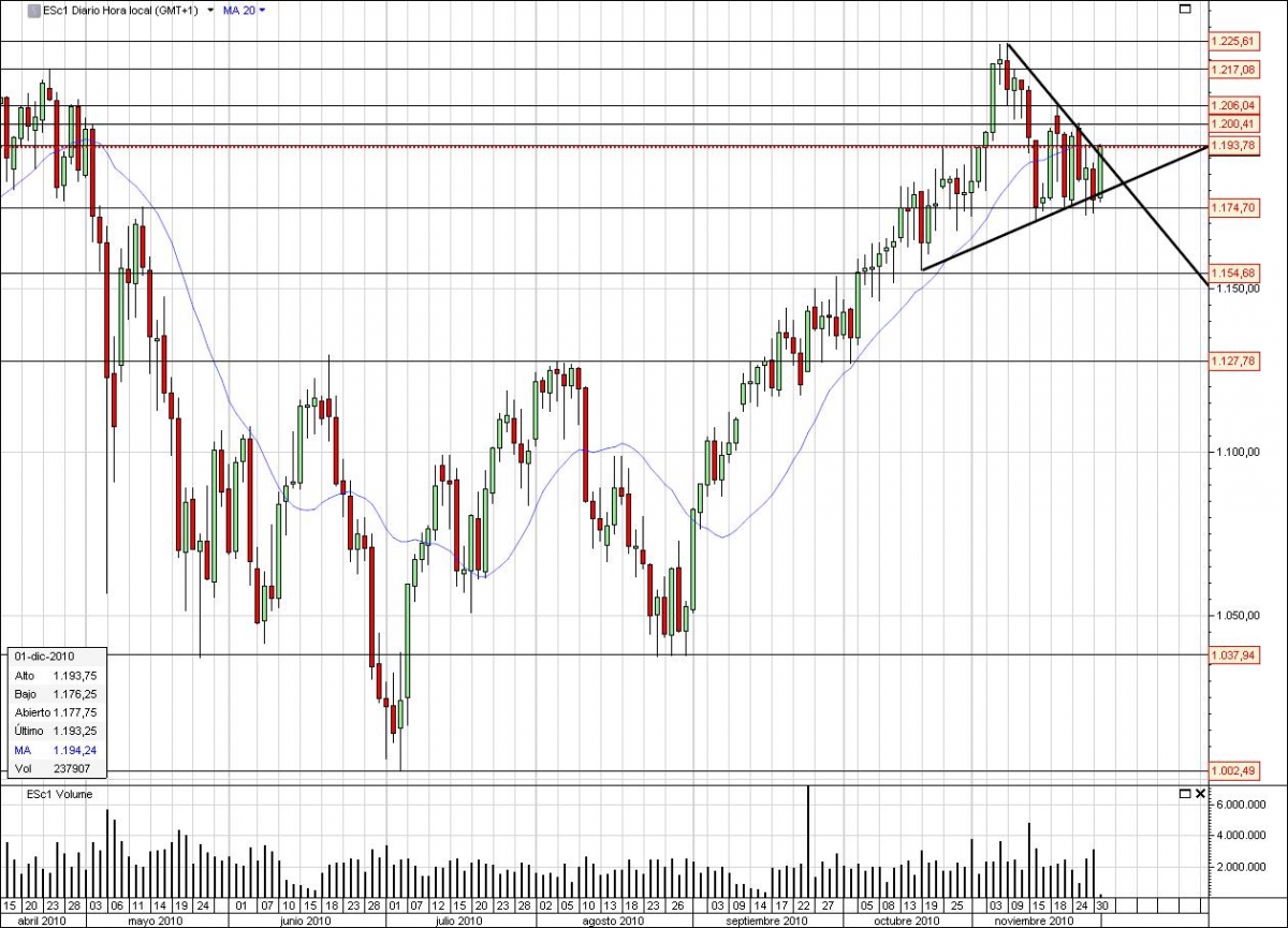 NIVELES ADICIONALES: 1213.25 Máximo del 11 de Noviembre 1206.00 Máximo del 21 de Noviembre 1200.00 Nivel Psicológico 1193.75 Resistencia 1174.75 Mínimo del 25 de Noviembre 1171.00 Mínimo del 16 de Noviembre |