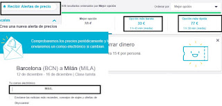 Las ofertas están cambiando constantemente, por lo que pueden variar de un día a otro. Una opción muy interesante que dispone skyscanner, es el servicio de alertas de precios. Si dejamos nuestro correo electrónico, nos avisan si el precio sube o baja, para el viaje que hayamos buscado.