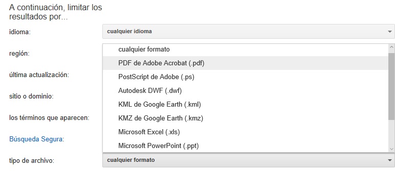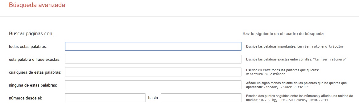 Ponemos en el buscador, búsqueda avanzada de google (os dejo enlace directo). Búsqueda avanzada