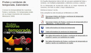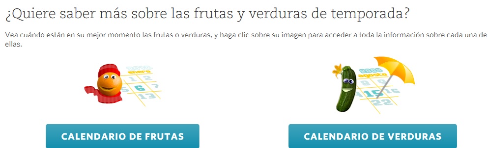 Si buscamos en la web, podemos encontrar dos páginas interesantes, en las que aparece un calendario indicando las frutas/verduras de temporada.
